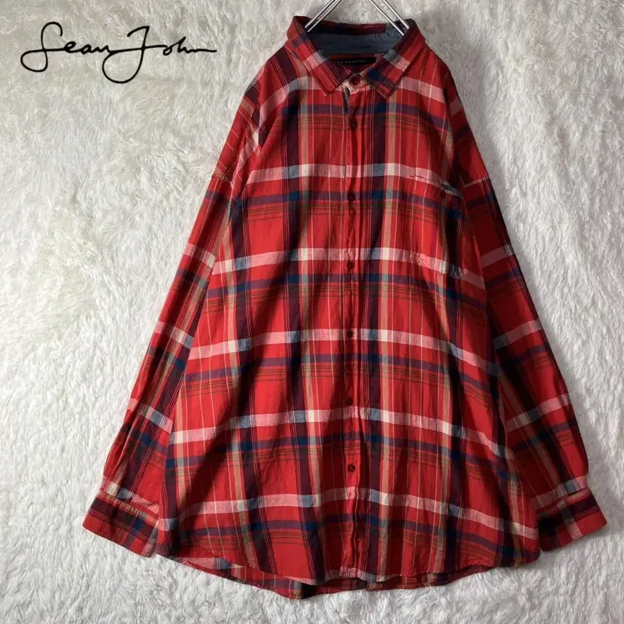 새상품급 숀 존 긴팔 셔츠 체크 100% 코튼 4XB 4XL