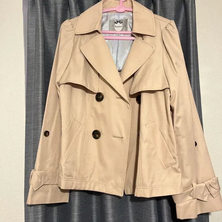 최종 리랜드트루 베이지 리본 포함 더블 브레스트 트렌치코트