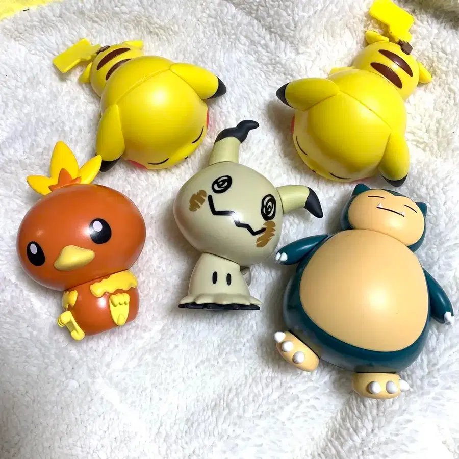 포켓몬 캡슐 캐릭터 가챠가챠 5개 세트입니다. 장식하고 있었기 때문에 흠집/얼룩이 있지만 장식하는 데는 문제가 없을 것으로 보입니다. 모두 확인하지는 않았지만 피카츄만 안쪽 녹색 페인트가 약간 묻어 있습니다...