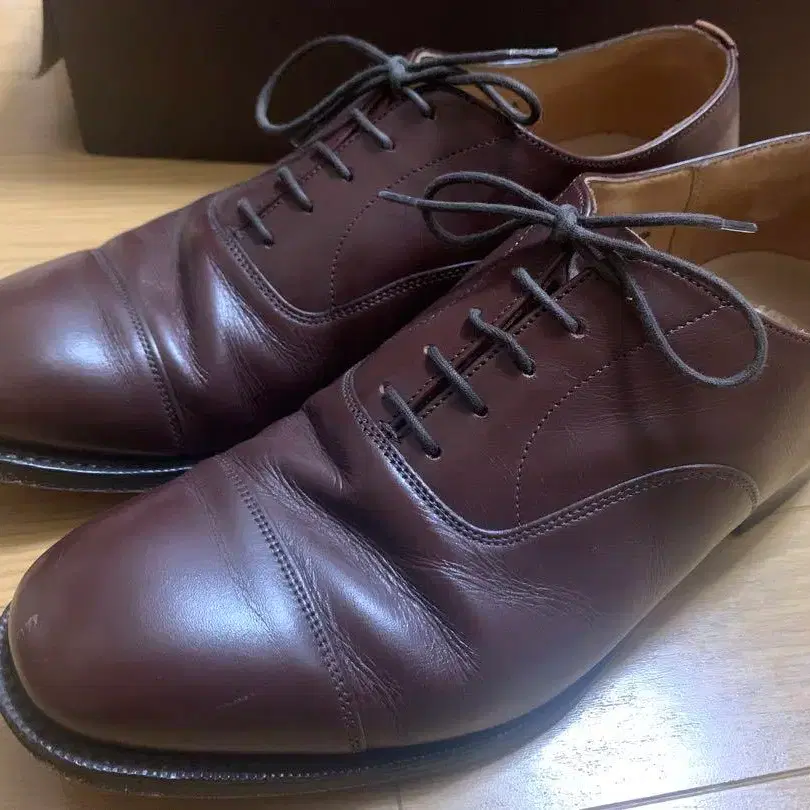 구형 church's THAMES 사이즈 - UK 7.0 와이즈 - G 라스트 - 73 컬러 - 브라운 소재 - 카프 부속품 - 상자 밑창 교환 등은 하지 않았습니다. 사진과 같이 발가락, 발꿈치에 흠집이나 스크래치가 있습니다. 약간의 착용감이 있지만, 삼도시 시절의 구형 church's이므로 좋아하시는 분은 검토해 주세요. 구매는 약 15년 전입니다.