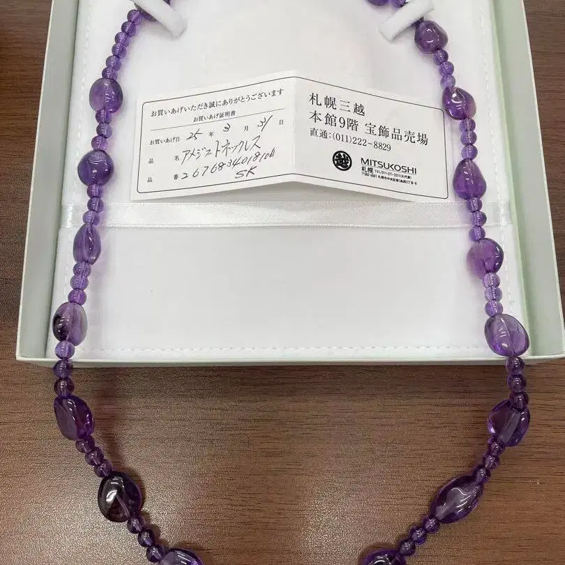 ※사진을 잘 확인하신 후 상태에 만족하시는 분만 구매 부탁드립니다. 도착 후 생각과 다르다고 하시는 분은 사양해 주십시오. ※사진에 찍힌 케이스는 없고 목걸이, 구입 증명서(사진에 찍힌 것)만 발송합니다. ※할인 협상 불가입니다. 보러 와주셔서 감사합니다. 2013년 3월에 미쓰코시에서 구입했습니다. 약간의 흠집 등이 있지만 비교적 깨끗한 상태입니다. 클로징에 SILVER 각인이 있습니다. 상태를 이해해 주실 수 있는 분은 부탁드립니다. 완벽한 상태를 원하시는 분은 양해 부탁드립니다. 퍼플색 석목 목걸이 유품 정리 목걸이 생전 정리 목걸이
