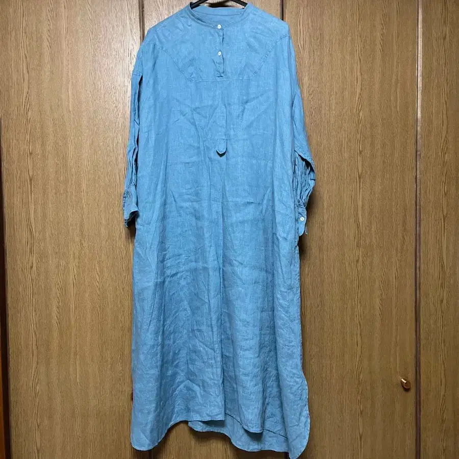 suro 린넨 100% 소재의 긴팔 롱 원피스 사이드 포켓, 사이드 슬릿으로 편안한 착용감. 총길이 약 120cm 너비 약 63cm - 컬러: 라이트 블루 - 스타일: 셔츠 원피스 - 소매 길이: 긴 소매 - 디자인: 사이드 슬릿 눈에 띄는 얼룩은 없지만 앞면 밑단 근처에 구멍이 뚫릴 것 같은 원단 손상이 있습니다. 사진으로 확인하신 후, 양해하실 수 있는 분만 구매 부탁드립니다.