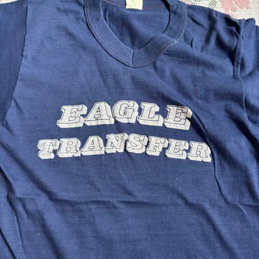 네이비 싱글 스티치 티셔츠 구제 의류 빈티지 앤티크
