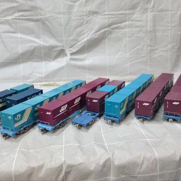 ※3/21 추가 기입 마지막 이미지를 보십시오. 완두콩 코키 104가 한 량 더 발견되었으므로 추가합니다. 결과적으로 11량 세트가 됩니다. ※16번은 아닙니다. ※13mm 게이지이므로 ※주의하십시오. 왼쪽에서 두 량은 토믹스 제품입니다. 이 두 량에 실려 있는 캥거루 편과 스카이블루 컨테이너는 제조사 미상입니다. 손톱이 걸리지 않기 때문에 고정 방법을 생각해야 합니다. 왼쪽에서 세 번째와 네 번째는 엔도제입니다. 컨테이너도 엔도제입니다. 남은 6량은 KATO제입니다. KATO제의 문제점은 손수레 외부에서 끼우는 차축이 총 9개 결손되어 있다는 것입니다. 마지막 이미지에서 확인해 주십시오. 부품 구하기가 어려울 것으로 보입니다. 이미지에 있는 것으로 전부입니다. 오리지널 박스, 설명서, 부속품 등 전혀 없습니다. 에어캡으로 포장하여 발송합니다.