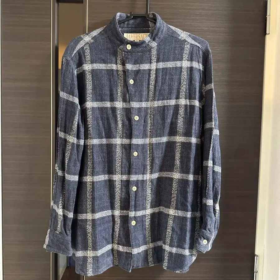 하버색 하버색 노카라 셔츠 밴드 카라 셔츠 체크