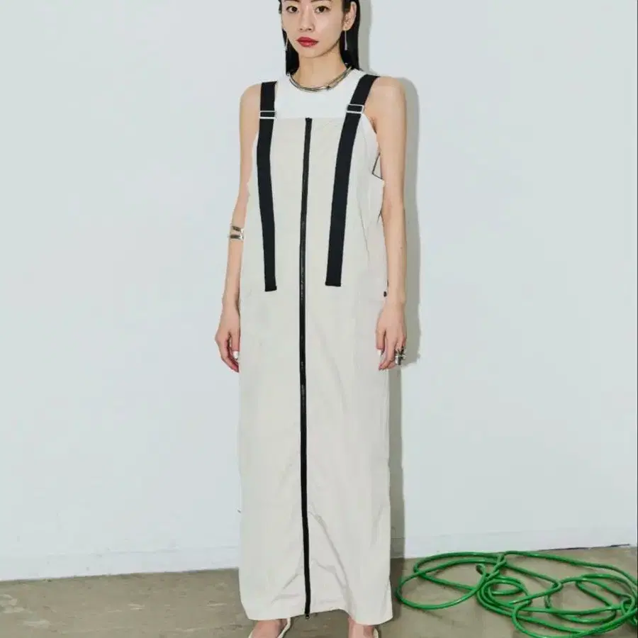 AIC. 숄더 벨트 지퍼 롱 원피스