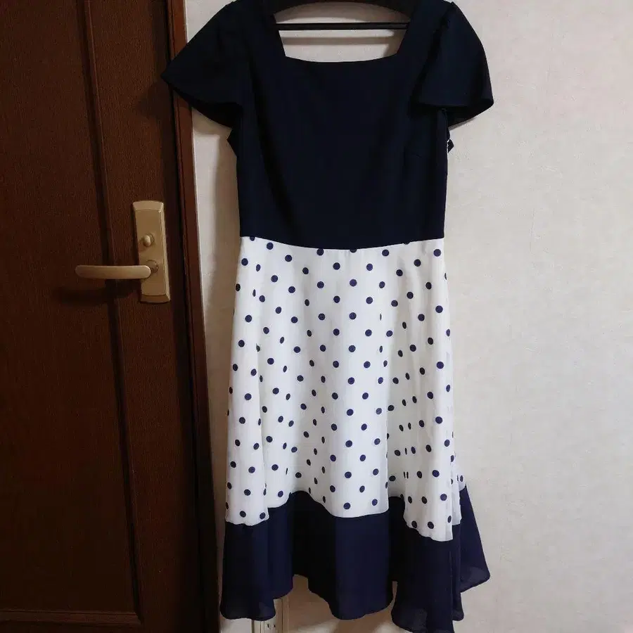 미사용 새상품 택 포함 자유구 도트 무늬 네이비 원피스 벨트 포함