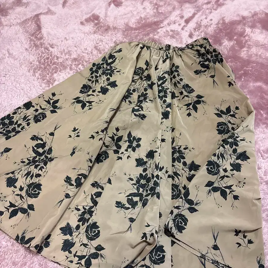 베이지와 검은색 꽃무늬, 허리밴딩 플레어 스커트. - 색상: 베이지와 검은색 꽃무늬 - 소재: 폴리에스테르 100% - 디자인: 허리밴딩 - 스타일: 플레어 스커트 안감이 없습니다. 이번 시즌 제품입니다. 올 시즌 착용 가능합니다! 태그는 없지만, 입어보기만 가능합니다.