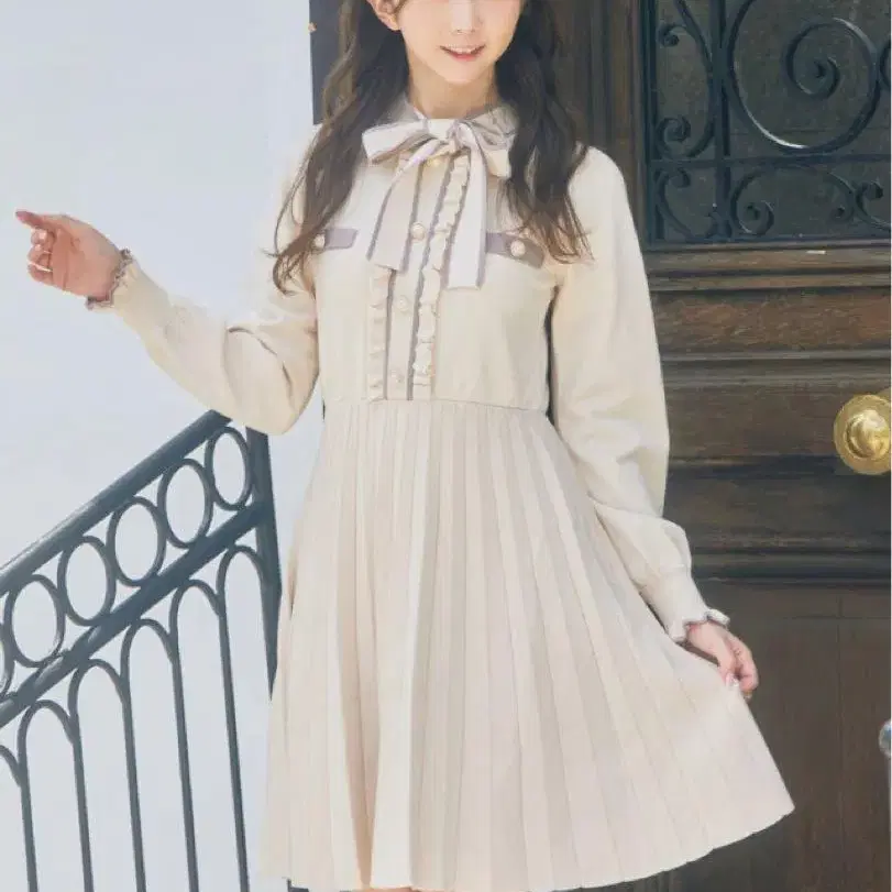 앙크루즈 리본 타이 플리츠 니트 원피스