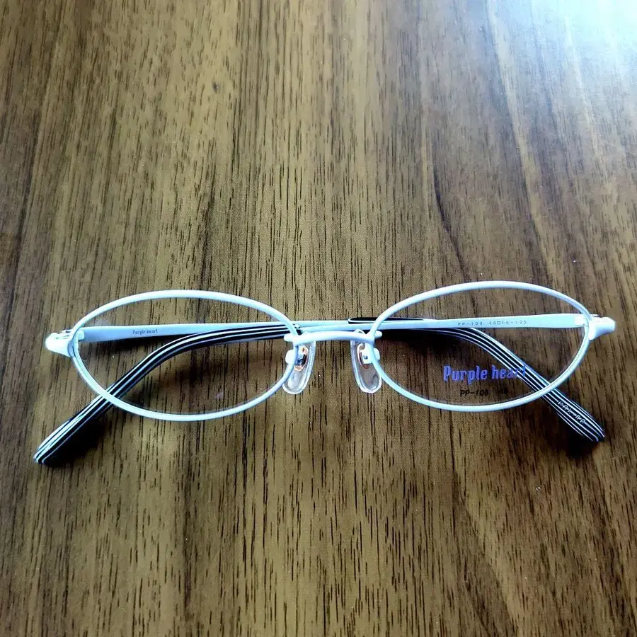 퍼플 하트 PP-106 미사용 새상품 프레임 컬러 흰색 프레임 사이즈 49□16-135 작은 사이즈로 소두인 분께 추천합니다. 장기 보관 상품이지만 도금 등이 깨끗합니다. 렌즈는 더미 렌즈입니다.