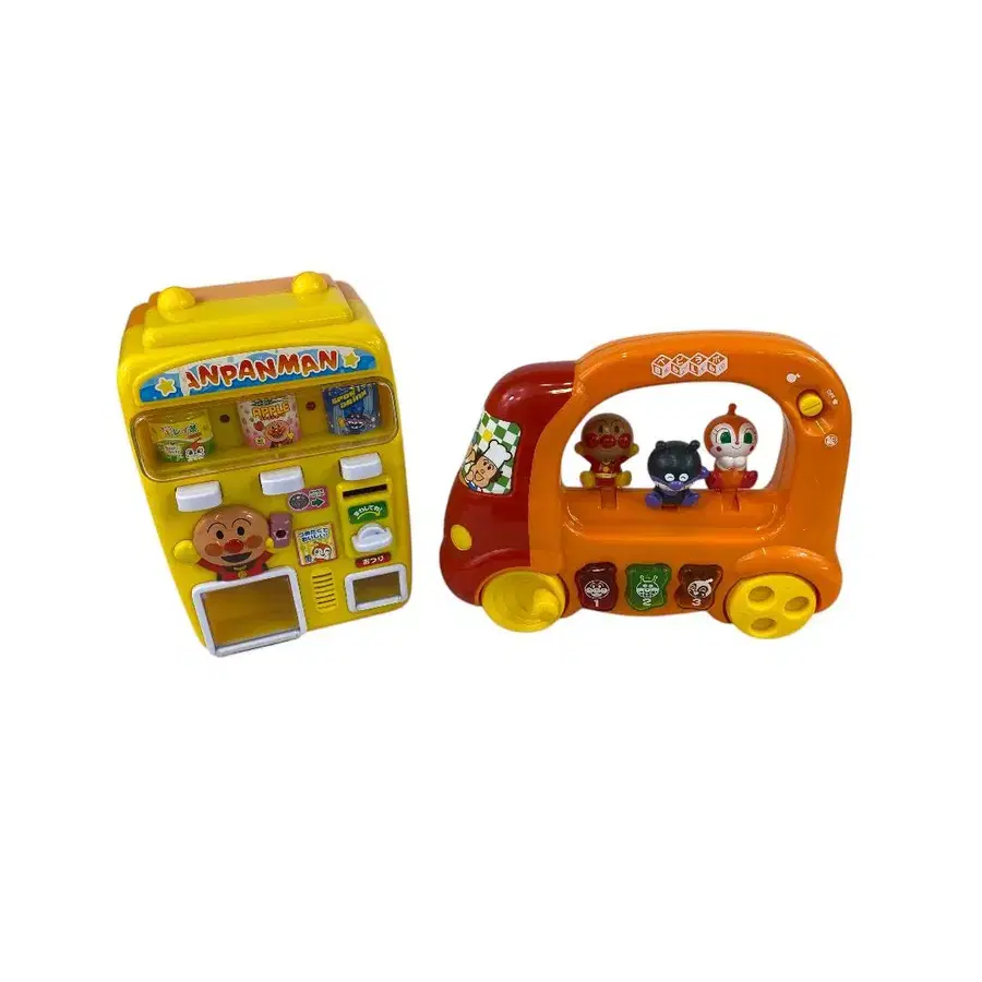 호빵맨 롤링 멜로디 버스 작동 확인 완료. 배터리는 부속되지 않습니다. AA형 건전지 2개가 별도로 필요합니다. 사용에 따른 약간의 흠집, 오염이 있습니다. 23cm × 6cm × 18cm 호빵맨 주스 자판기 - 사이즈: 약 18cm x 13cm × 10cm 주스는 5개가 들어 있지만, 동전이 결품되어 소리가 나지 않습니다. 버튼을 누르면 주스가 나옵니다. 중고품이라는 점을 양해 후 구매 부탁드립니다.