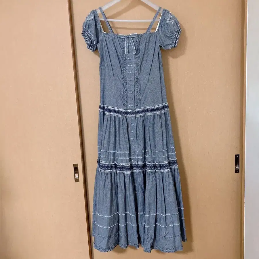 새상품급 핑크하우스 청백 깅엄 체크 원피스 리본 포함 반팔