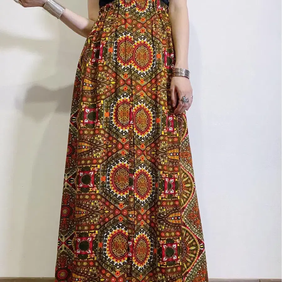 70년대 빈티지 롱 스커트 히피 사이키 에스닉 미국