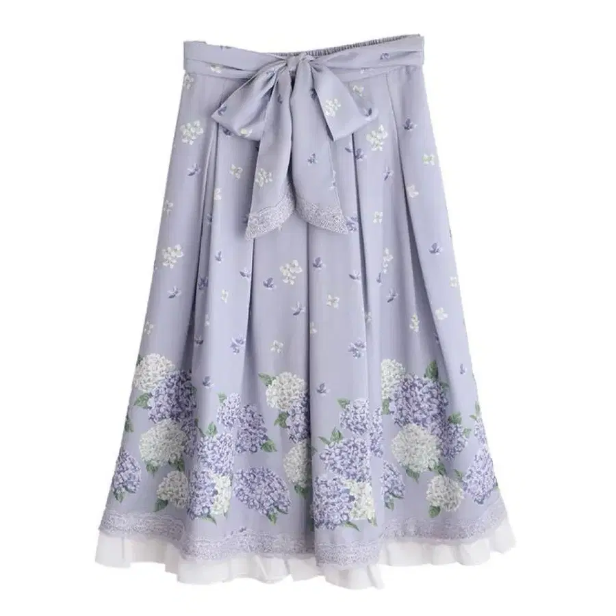 존재감 있는 큰 수국 패널 프린트가 예쁜 플레어 스커트