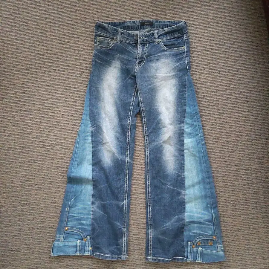 cvtvlist 데님 팬츠 실버 버튼 페인트 가공