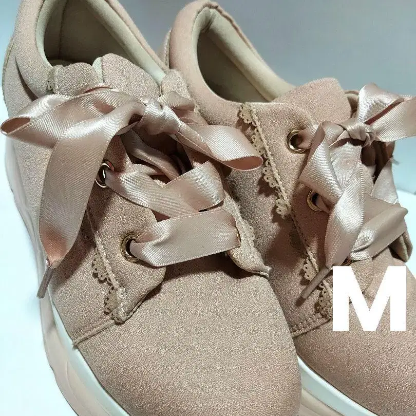 미사용 새상품 시마무라 통굽 스니커즈 새틴 리본 핑크 지뢰 M