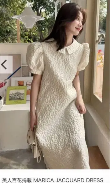 • 7부 소매 꽃무늬 롱 원피스 화이트