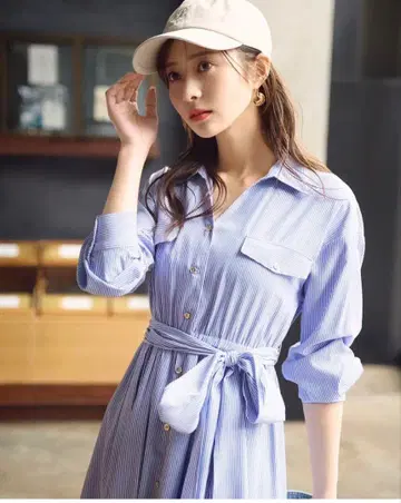 스트라이프 원피스 / 롱 원피스 / 셔츠 원피스(긴 소매)