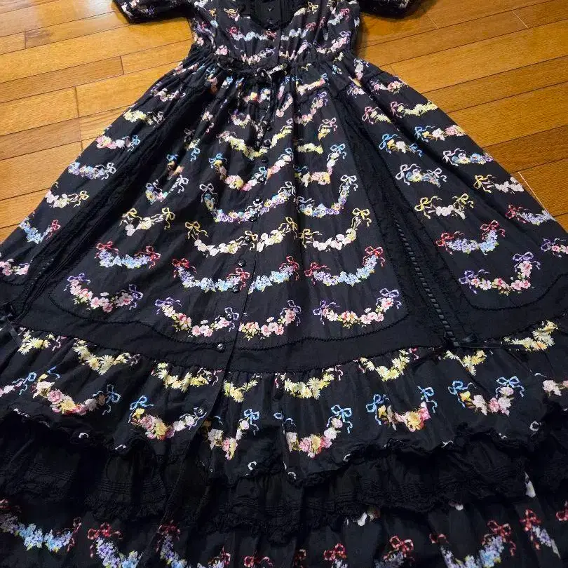 가격 인하했습니다! 핑크하우스 피팅만 가능한 미사용품 le langage des fleurs pt 원피스입니다. 정가 121,000엔이었습니다. 리본 무늬의 검은색 반소매 롱 원피스, 프릴이 달려 엘레강트한 디자인. 세부까지 매우 화려하고 멋집니다! 폭 46, 기장 127 - 색상: 검정 - 디자인: 리본 무늬 - 소매: 반소매 - 칼라: 검은색 칼라 - 프릴: 프릴 있음 - 버튼: 앞면 버튼 - 허리: 허리밴딩 - 길이: 롱 부탁드립니다.