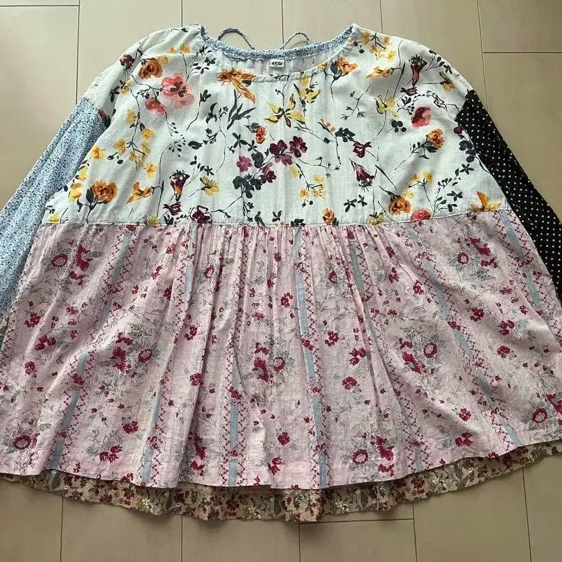 택 포함 45R 인디고 노카라 튜닉 셔츠 풀오버 패턴