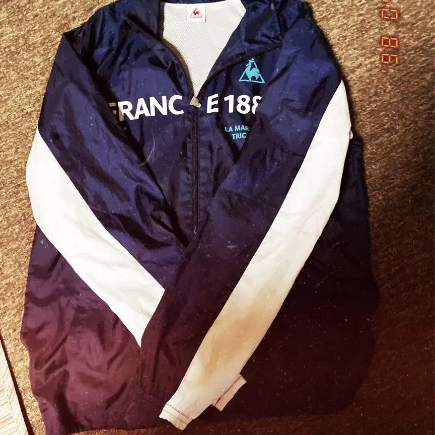 방문해 주셔서 감사합니다. 상품 설명 경량 나일론 소재의 네이비 윈드브레이커, 집업 스타일, 소매에 밴딩. - 컬러: 네이비/화이트 - 디자인: 앞면에 'FRANCE 1882' 프린트 - 소재: 경량 나일론 - 스타일: 집업 - 특징: 소매에 밴딩 - 로고: 트리코로 디자인된 로고 이해해 주시는 분들께 구매해 주셨으면 합니다. 잘 부탁드립니다.