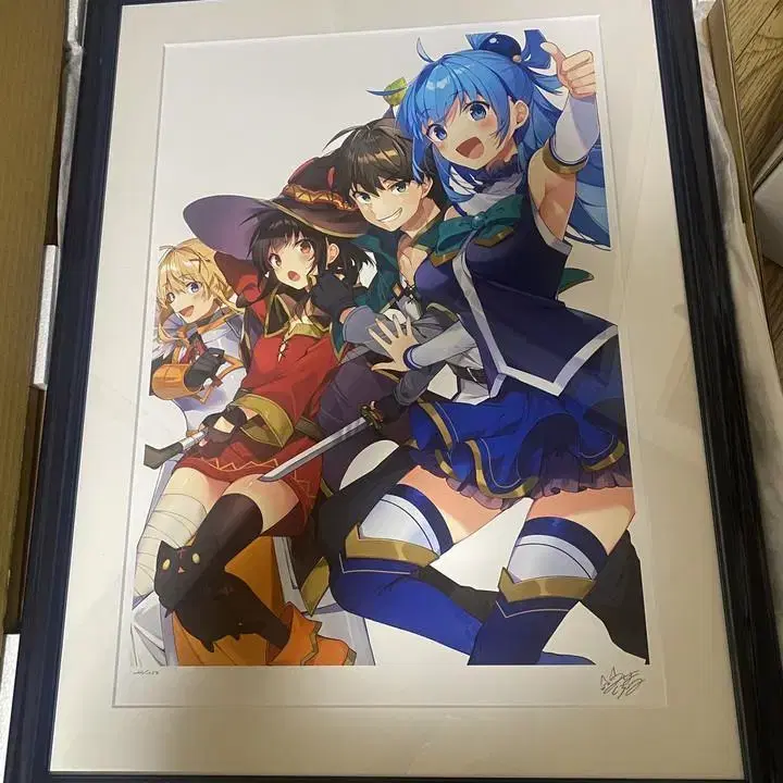 포스터나 태피스트리 등의 굿즈와는 색다른 색채가 풍부한 판화 작품에 미시마 쿠로네 선생님의 친필 사인이 들어간 작품입니다. 세상에 나와 있는 수량도 적은 한정 작품이므로 이 기회에 구입해 보시는 것은 어떨까요? 이 멋진 세계에 축복을! 이 멋진 세계에 폭죽을! 아루비반 아루쥬네스 굿즈 애니메이션 아쿠아 다쿠네스 카즈마
