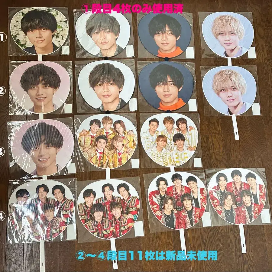 나가세 렌의 역대 부채, 킹프리 5인조 시절 그룹 부채 세트 판매입니다. 모두 구매 시 외포장 포함 최상단 4장만 기사용, 나머지는 신품 미사용 (이미지 1장 참조) 이미지로 확인하기 어려운 경우 언제든지 댓글로 문의해 주세요. 익명 배송 배송비가 많이 들기 때문에 현재 낱개 판매는 고려하고 있지 않습니다. 히라노 시요 나가세 렌 다카하시 카이토 키시 유타 진구지 유타 그룹 이름···King&Prince 멤버 이름···나가세 렌 아이템 종류···부채