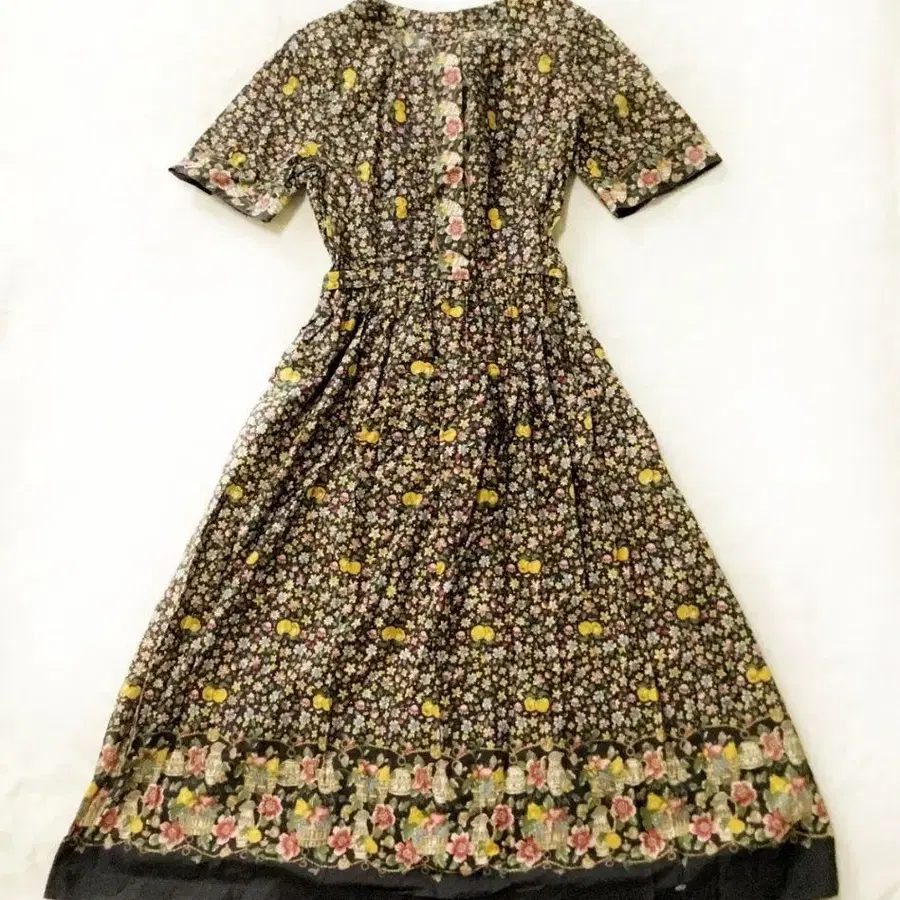 베이스는 검은색이고 여러 가지 색상의 후르츠, 플라워 무늬입니다.