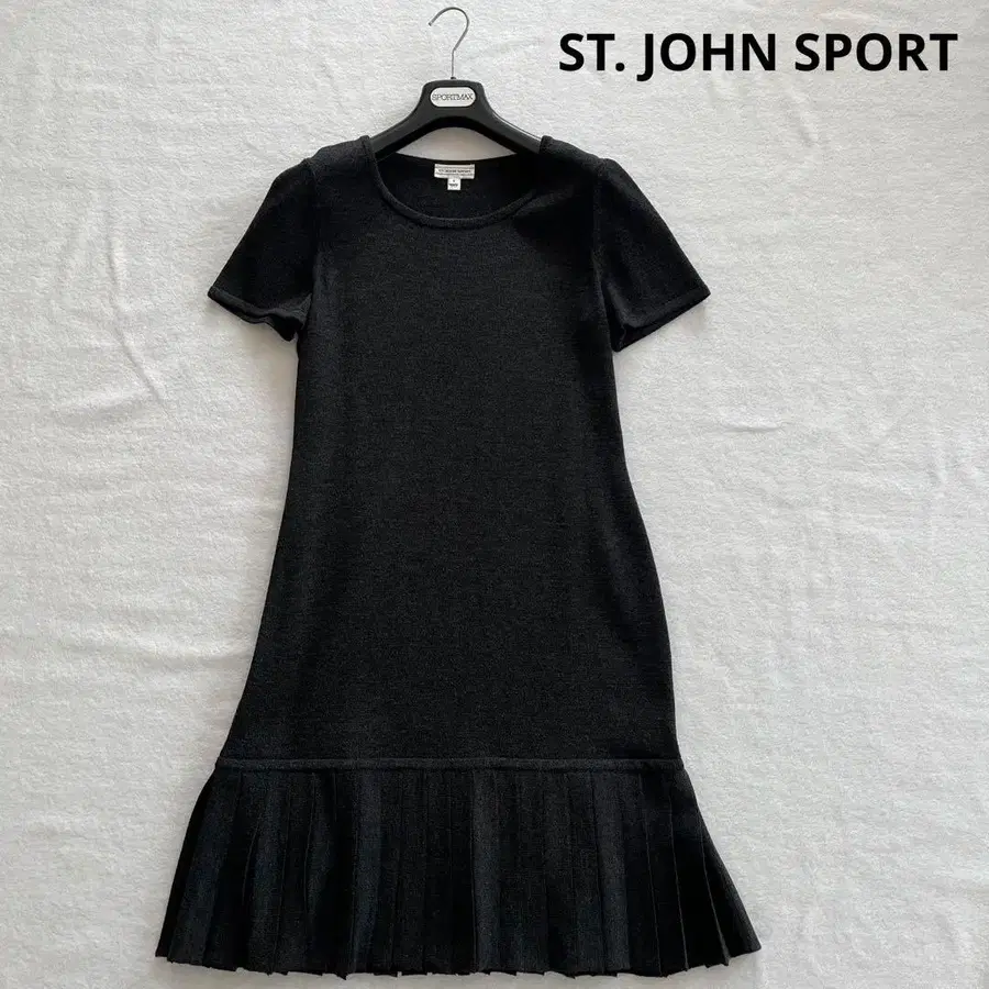 ST.JOHN SPORT 반팔 니트 원피스 밑단 플리츠 그레이 S