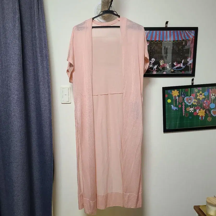 데미룩스 빔즈, 롱 5부 소매 니트 가디건, 핑크, 루즈한 사이즈
