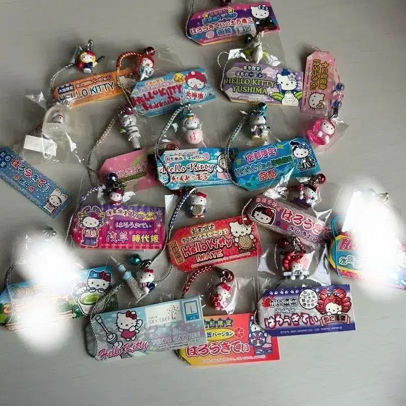 헬로키티 스트랩과 부채 세트, 다양한 디자인이 매력적입니다.