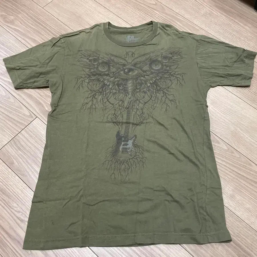 초레어! 올리브 그린 티셔츠 기타 고유명사 디자인
