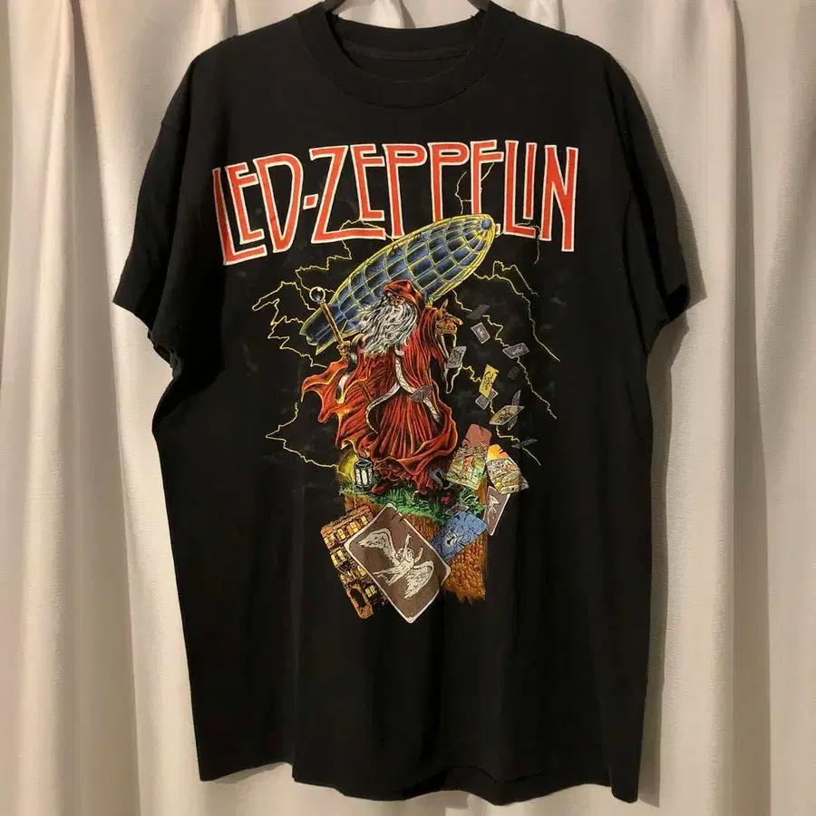80년대 레드 제플린의 티셔츠입니다. 택은 없지만 스크린 스타즈의 XL 사이즈 정도입니다. 실 사이즈는 54cm 정도입니다. 너무 크지 않고 지금 딱 좋은 사이즈감입니다. 디자인에 대해서는 특별히 언급할 것이 없으며, 밴드다운 멋스러운 티셔츠입니다. 중고 상품이므로 세세한 상태의 누락은 양해 부탁드립니다.