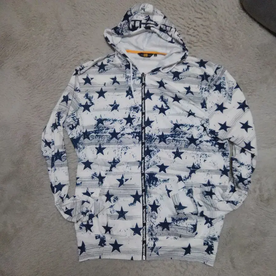 별무늬의 화이트와 네이비 풀 집업 후드티, 후드와 편리한 포켓이 달려 있다. - 디자인: 별무늬 프린트 - 컬러: 화이트/네이비 - 후드: 후드 달린 후드티 - 포켓: 앞면에 포켓 있음 - 지퍼: 풀 지퍼 타입 방문해 주셔서 감사합니다.