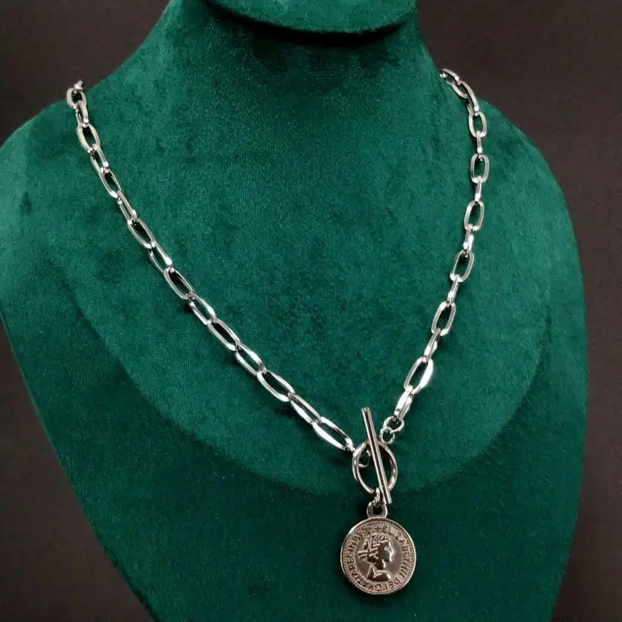 빈티지 코인 실버 체인 링크 토글 목걸이