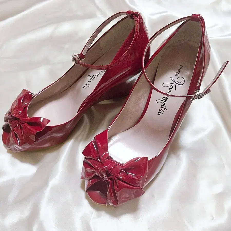 GINZA KANEMATSU 하이힐 리본 오픈토