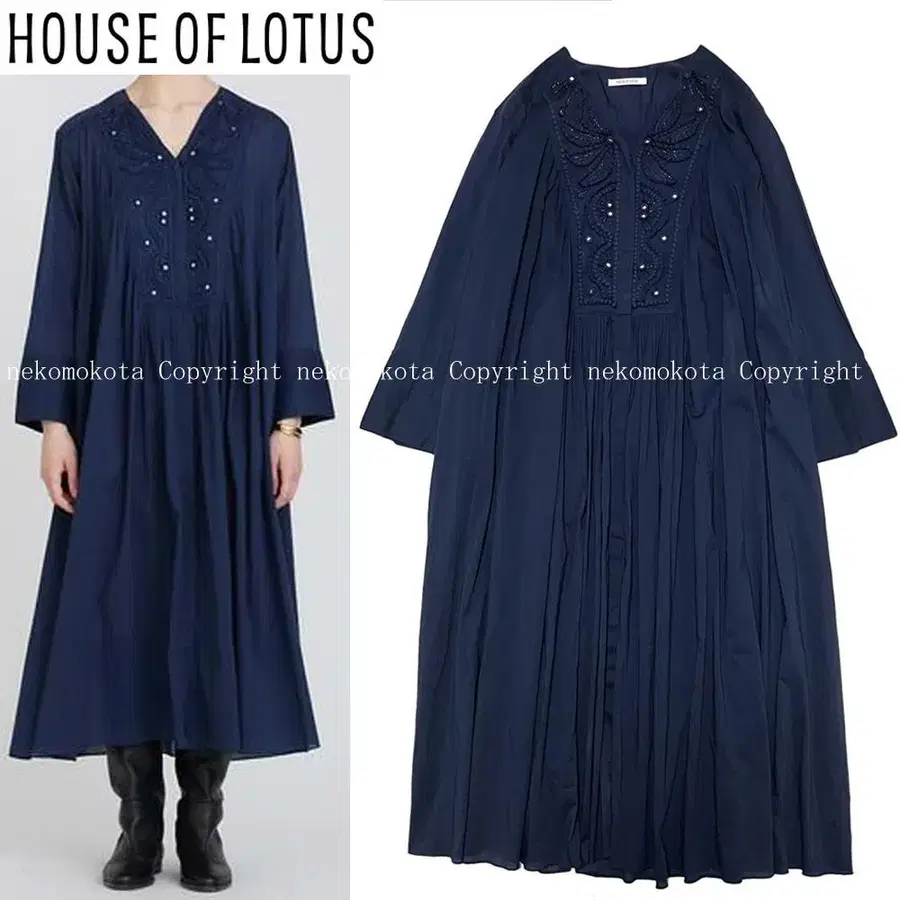 자동 번역되었어요. 원문보기미사용 택 포함 2024 하우스 오브 로터스 자수 도리 워크 턱 원피스 M 네이비 거울 워크 HOUSE OF LOTUS 기리시마 카렌