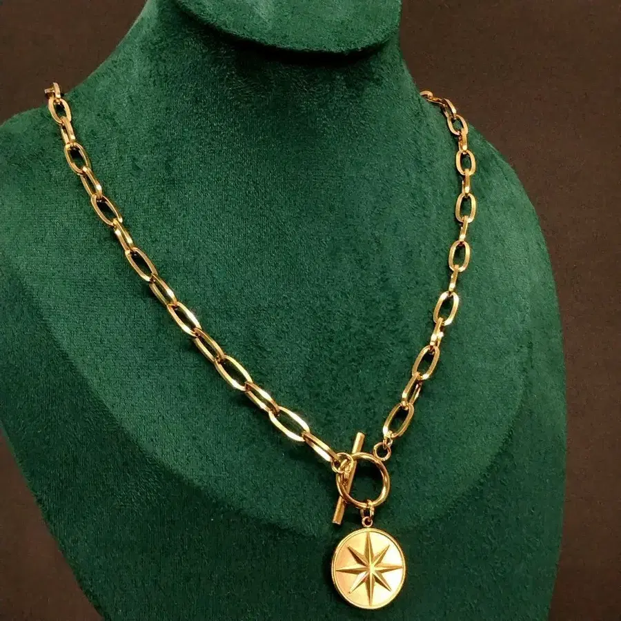 빈티지 골드 코인 체인 링크 토글 목걸이