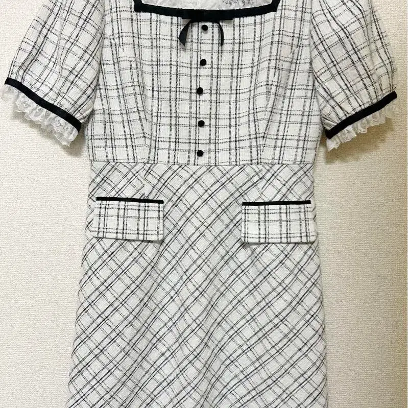 evelyn 바이컬러 트위드 타이트 원피스 반팔 미니 스커트 화이트