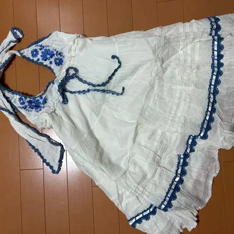 #루패션 #LIZLISA #리즈리사 화이트 블루 꽃 자수 봄/여름 레이스 플레어 리본 리조트풍 홀터넥 원피스 히메 스타일 히메 갸루 헤이세이 갸루 레어 희귀 499599