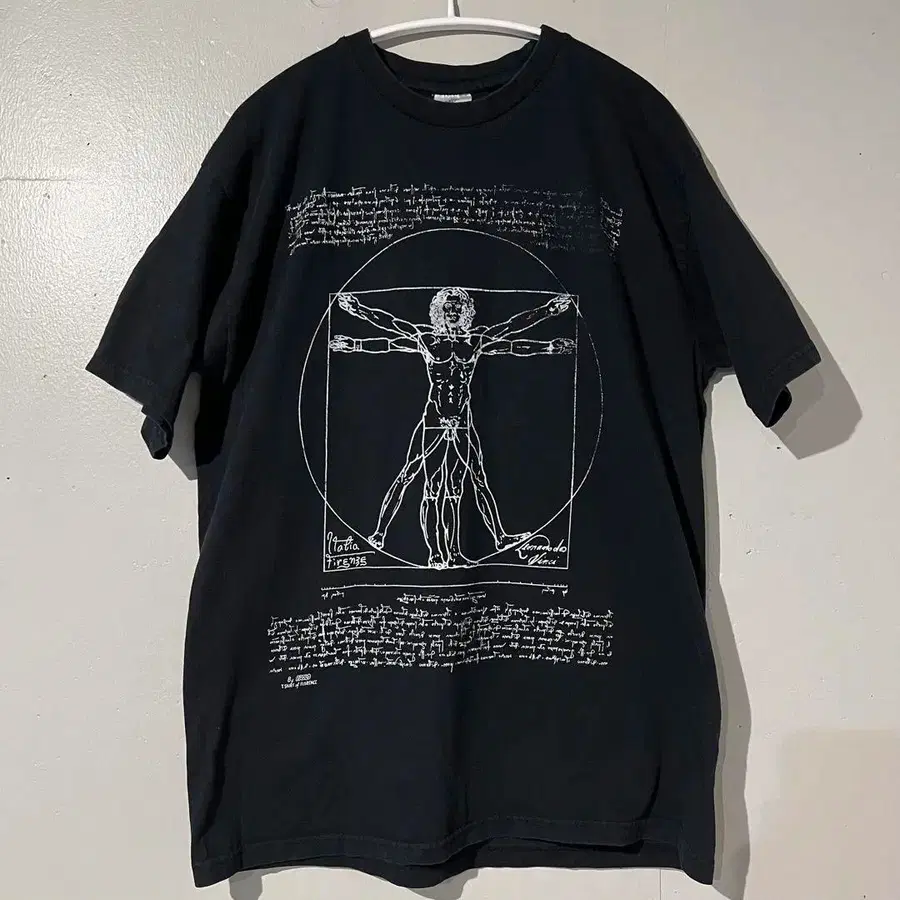 레오나르도 다빈치의 비트루비우스 인체도가 프린트된 티셔츠입니다. 택은 유로 T의 기본 B&C. 10년 정도 전에 하라주쿠의 beruf에서 구입했습니다. 모노톤으로 입기 편한 아이템입니다. 색 바램도 적당히 진행되어 성숙한 분위기를 자아냅니다. 비트루비우스 중에서도 판의 사이즈 밸런스가 좋고 성숙한 느낌으로 입을 수 있는 아이템이라고 생각합니다. - 색상: 검정 - 디자인: 레오나르도 다빈치의 비트루비우스 인체도 - 소재: 코튼 Size: M 기장: 70.5cm 어깨 너비: 49cm 가슴 너비: 50cm 구제 의류이므로 상태 등은 이미지로 판단하시기 바랍니다. 잘 부탁드립니다. #구제 의류 #빈티지 #빈티지 # 90년대, 90년대 # 아트 T # ART T # Picasso # 피카소 # 다빈치 # Salvatore Dali # 달리 # van gogh # 고흐 # Mona Lisa # 모나리자 # Etcher # 에셔