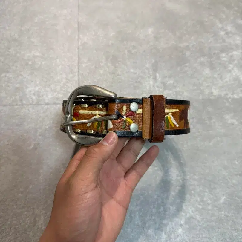 벨트 USA제 80년대 빈티지 웨스턴 가죽 벨트