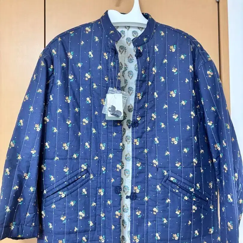 FREAK'S STORE 택 포함 미사용 네이비 플라워 패턴 퀼팅 리버서블 자켓입니다. 차이나 버튼이 매우 귀엽습니다. - 색상: 네이비 - 디자인: 플라워 패턴 - 소재: 퀼팅 - 부속품: 택 포함