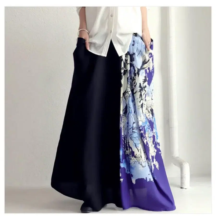 안티카 플레어 스커트 블랙과 보라색 꽃무늬