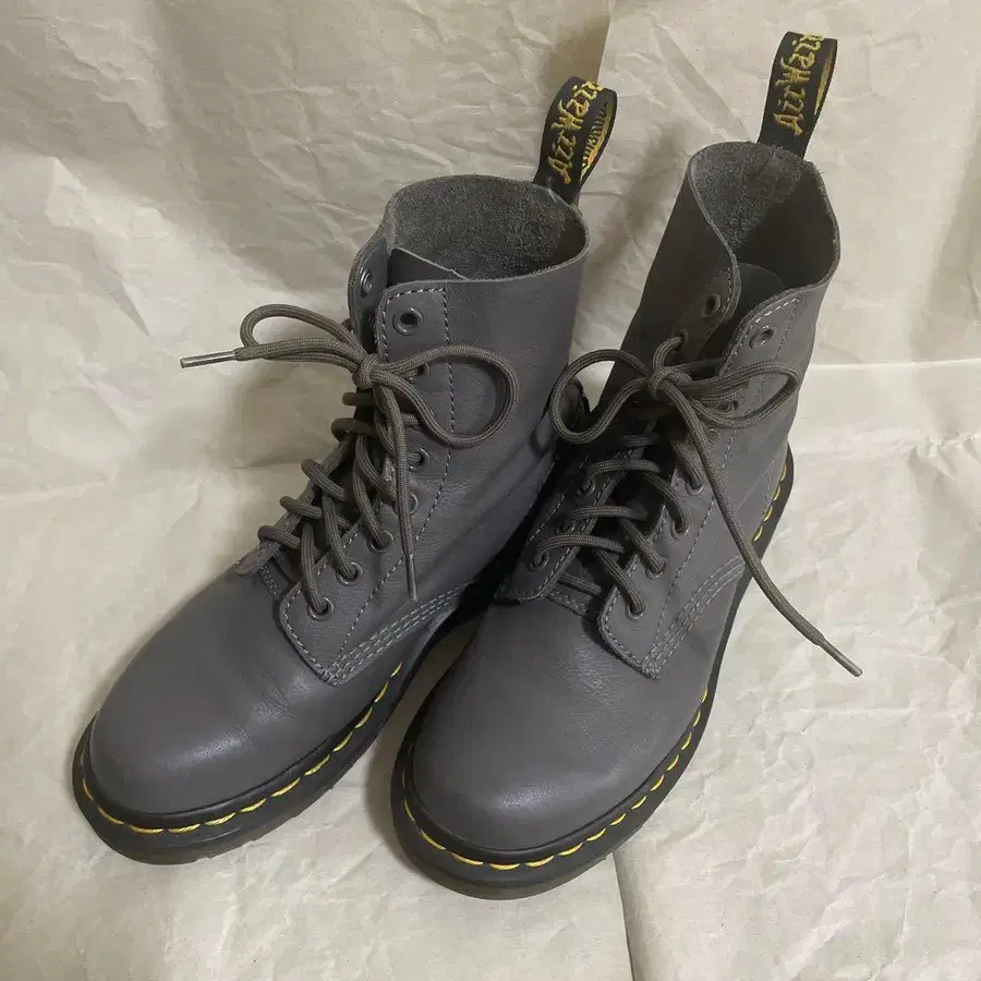 닥터마틴 한정판 모델 8홀 그레이 사이즈...UK4 박스 없음 인솔을 다른 것으로 바꿔서 신었기 때문에 인솔은 없습니다. 스크래치 등의 상태는 사진으로 확인 부탁드립니다.