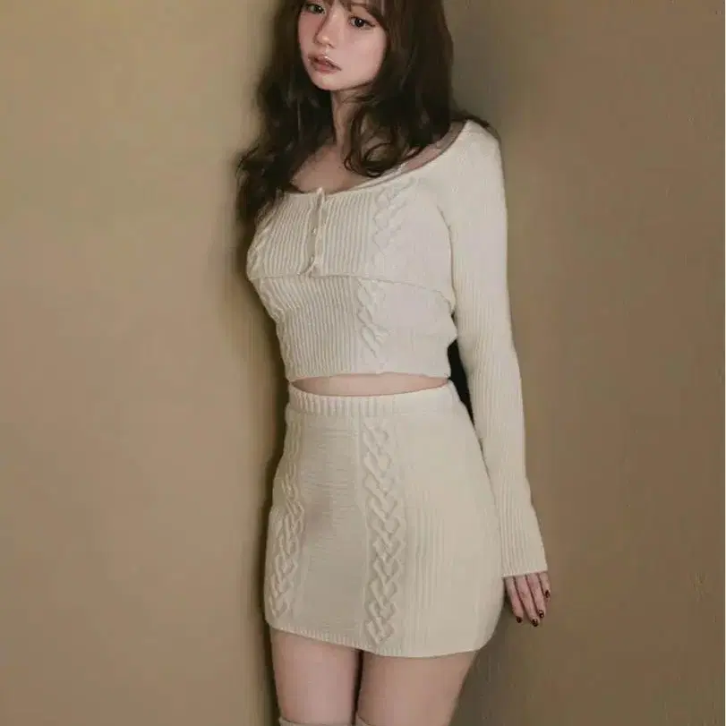 ANDMARY Donna 니트 카디건 세트 아이보리 ANDMARY Donna knit cardigan set up ivory 즉시 구매 가능 SIZE F 아이보리 컬러의 케이블 니트 짜임 크롭 탑과 스커트 세트. - 컬러: 아이보리 - 소재: 니트 - 스타일: 크롭 탑과 스커트 세트 - 디자인: 케이블 니트 짜임 - 소매 길이: 긴 소매 방문해 주셔서 감사합니다.