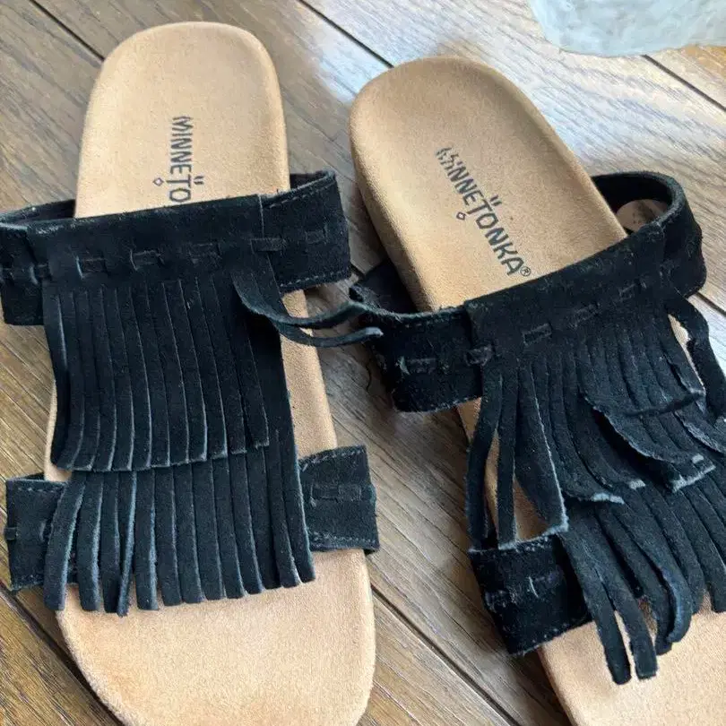 프린지 디자인의 블랙 스웨이드 샌들, 편안한 러버 솔. - 색상: 블랙 - 소재: 스웨이드 - 밑창: 러버 솔 - 디자인: 프린지 폭은 스웨이드 부분에 밴딩이 들어 있어 가로 길이가 긴 분도 편안하게 신을 수 있습니다. 방문해 주셔서 감사합니다.