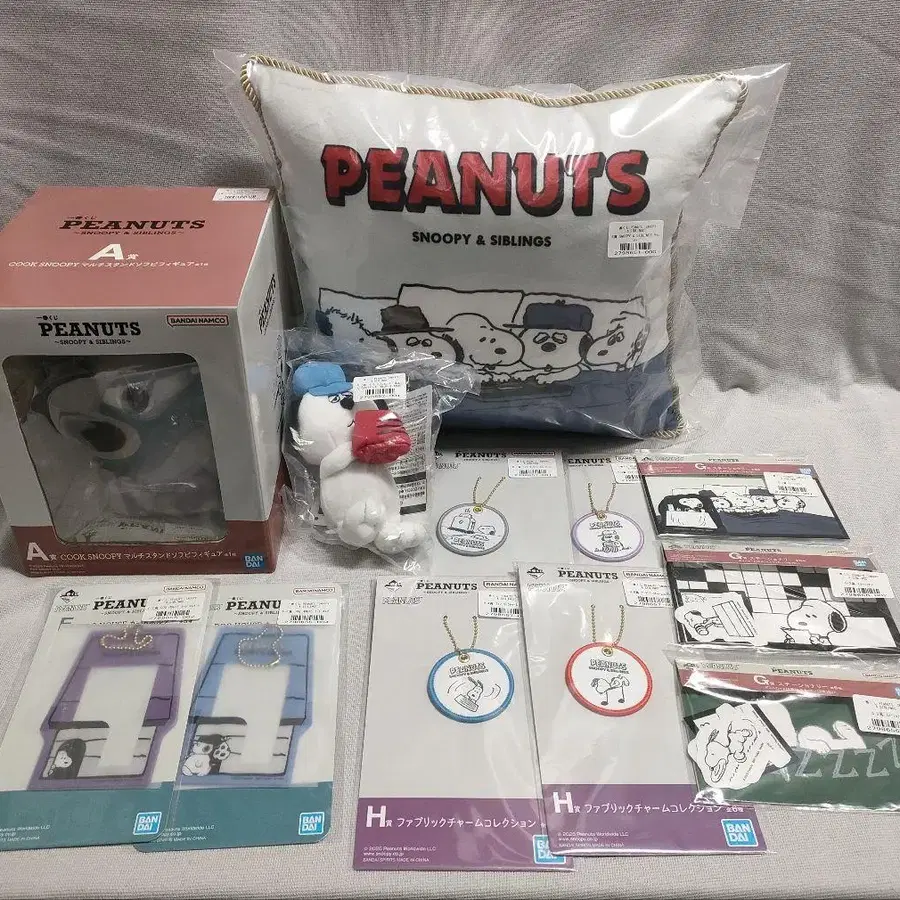 A상 멀티 스탠드 소프트 비닐 피규어 B상 쿠션 C상 치라린 프렌즈 봉제 인형 마스코트 F상 DOG HOUSE 카드 홀더 2종 G상 문구류 3종 H상 패브릭 참 컬렉션 4종 모든 상품은 개봉되지 않은 세트로 구성되어 있습니다. 개별 판매는 하지 않으므로 양해 부탁드립니다. 봉지 등에 미세한 초기 흠이 있습니다.