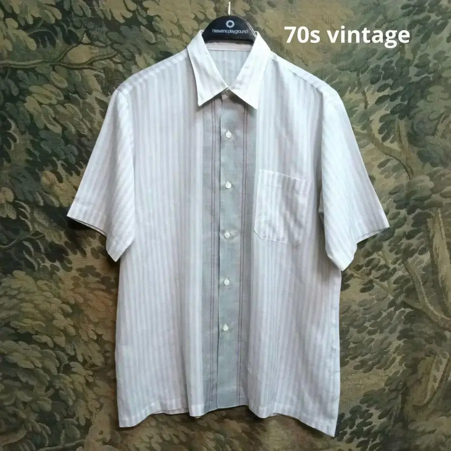 70년대 빈티지 린넨 블렌드 스트라이프 반팔 셔츠