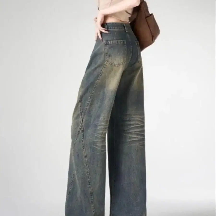 데미지 가공 와이드 레그 데님 팬츠